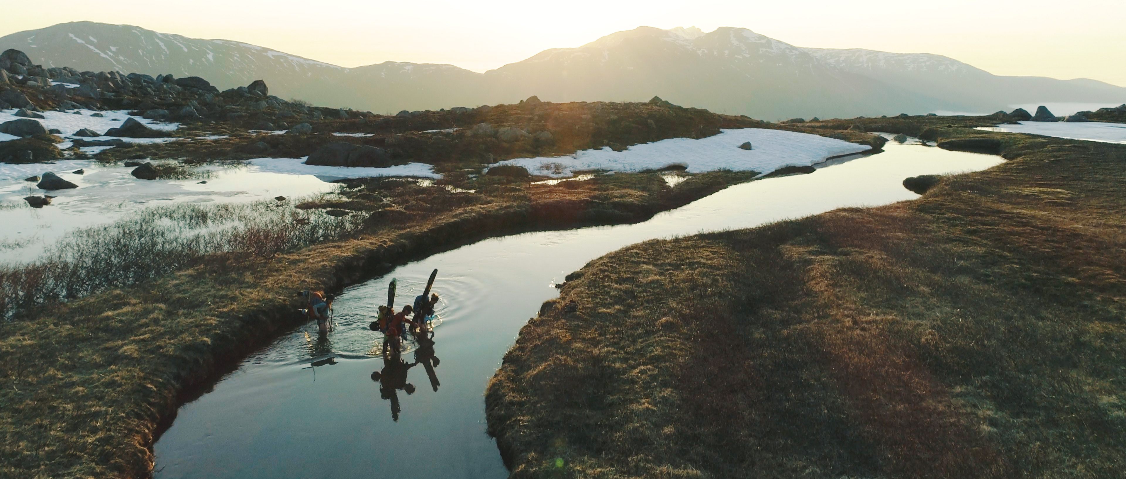 Roll & Ride is an essay about a personal journey. About finding his own way in life. It’s about learning to discover what we are personally looking for, which goals in life we want to achieve and why we pay so much attention to others. After a long freeride competition season, Melissa Brandner, Manuela Mandl and Steffi Noppinger decide to slow down. To seeksolitude, feel the elements and chase steep lines in a different way. Using E-bikes as a low impact way to move forward, as Mother Nature tries her best to push them back. Starting their journey in Bodø in Northern Norway they are heading South. Landscape and snow cover dictates their route. Stunning surroundings, steep couloirs, new acquaintances and midnight sun solitude await them.